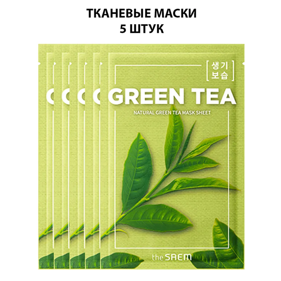 - Тканевая маска с экстрактом зеленого чая [The Saem] Natural Green Tea Mask Sheet