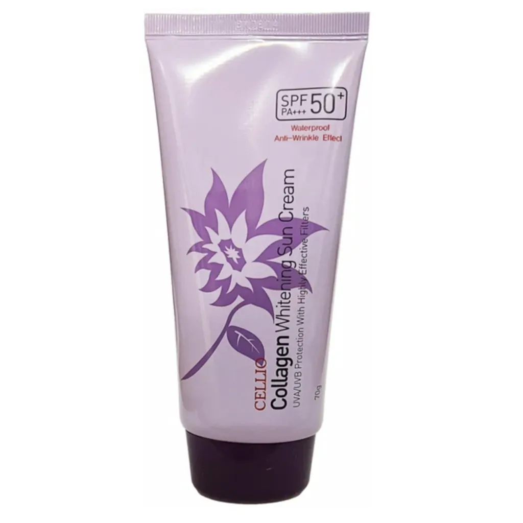 - Антивозрастной солнцезащитный крем с коллагеном [Cellio] Collagen Whitening Sun Cream SPF50+ PA+++